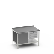 Steel Top Heavy Duty Workbench | Cupboard & 3 Drawer Storage