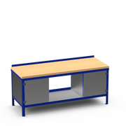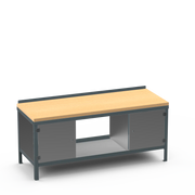 Heavy Duty Steel Workbench with 44mm Solid Wooden Top, Twin Enclosed Cupboards & Lower Shelf