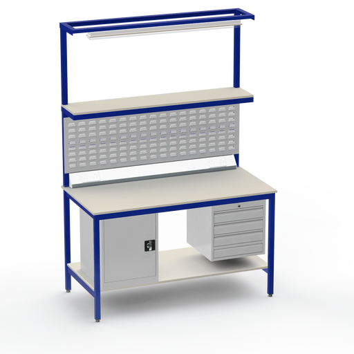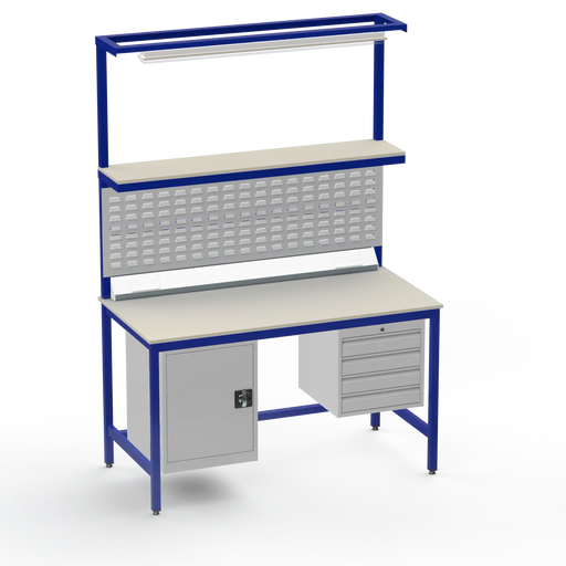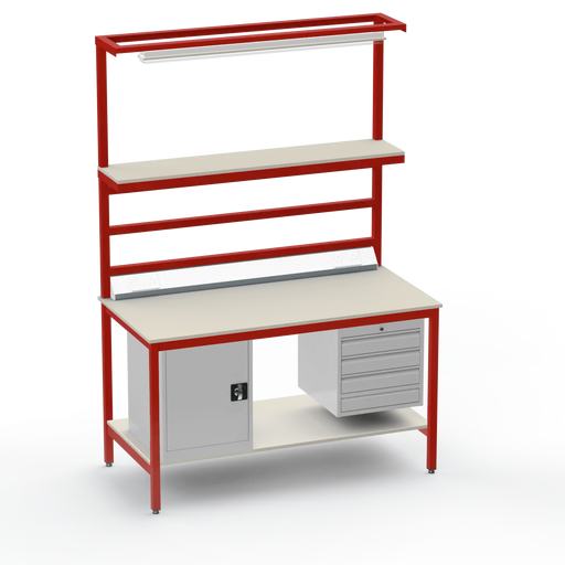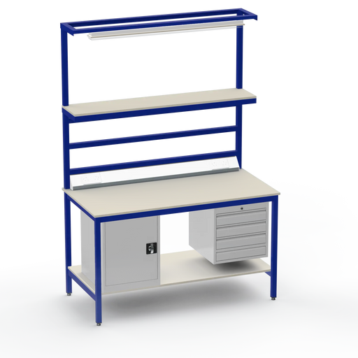 Electronics ESD Workbench | Anti-Static Worktop | Cupboard & 4 Drawers | Upper Shelf | Lighting Rail