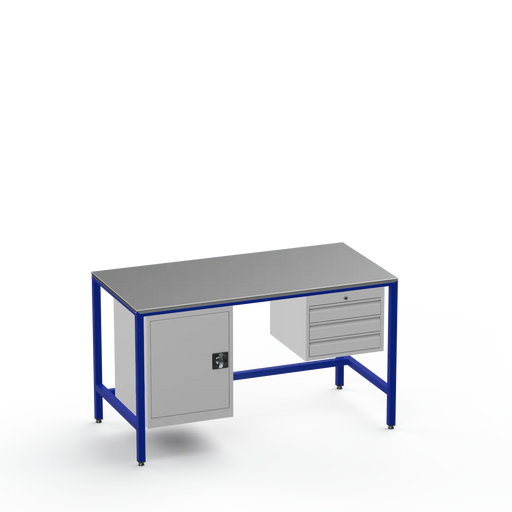 UK WorkbenchesMedium Duty Steel Worktop Workbench with Cupboard and 3-Drawer Storage This medium-duty workbench features a durable steel worktop and robust stee...