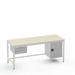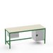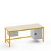 This medium-duty ESD workbench features a durable laminate worktop and secure storage configuration with a 2-drawer unit on the left side and a cupboard on the right—perfect for organised electronics assembly and sensitive component handling.
