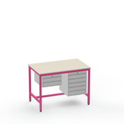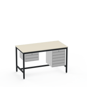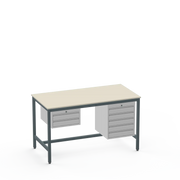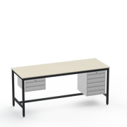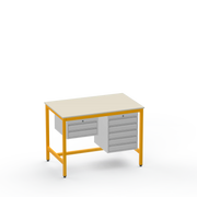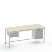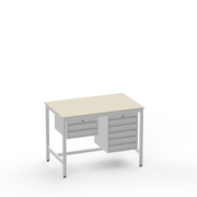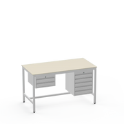 This Medium Duty Anti-Static (ESD) Electronics Workbench features a durable Laminate Worktop and asymmetrical storage with a 2-drawer unit on the left side and a 5-drawer unit on the right side for ultimate organisation in sensitive electronics workspaces.