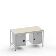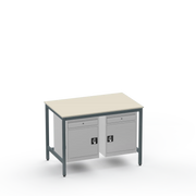 Medium Duty Anti-Static (ESD) Electronics Workbench with Laminate Worktop and Dual Cupboard with Drawer Storage. Built for sensitive electronics work, this industrial-standard workbench prevents electrostatic discharge while providing symmetrical, secure storage on both left and right sidesβCupboard with Drawer configurations for ultimate organisation.