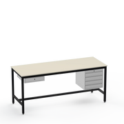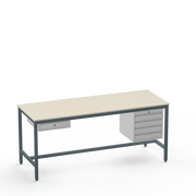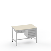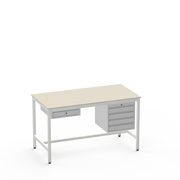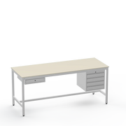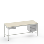 This Medium Duty Anti-Static (ESD) Electronics Workbench features a durable Laminate Worktop and asymmetrical storage with a Single Drawer Unit on the left and a 4 Drawer Unit on the right for optimised organisation in sensitive workspaces.