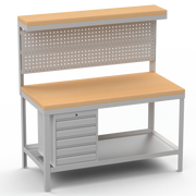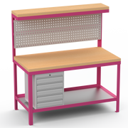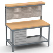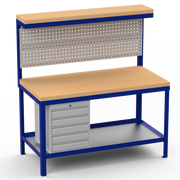Heavy Duty Workbench | Hard Wood Worktop | Pegboard | Upper-Shelf | Drawers