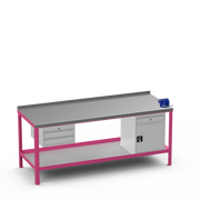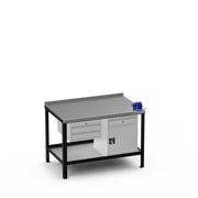 Heavy Duty Steel Workbench with Galvanised Top, 2-Drawer Unit, Cupboard & Drawer Unit, 4" Mechanics Vice & Lower Shelf