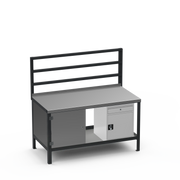 Heavy Duty Steel Workbench with Pegboard Support Rails, Cupboard & Cupboard/Drawer