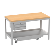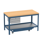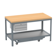 Mobile Heavy Duty Workbench | Wooden Worktop | 2 Drawers