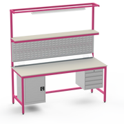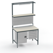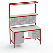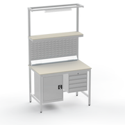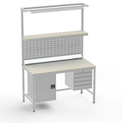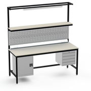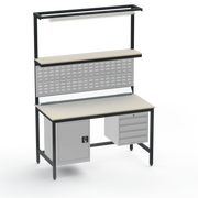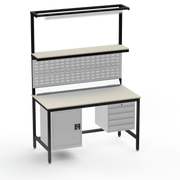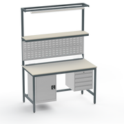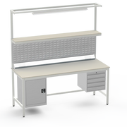 This Medium Duty Anti-Static (ESD) Electronics Workbench features a durable Laminate Worktop, left-side lockable cupboard, and right-side 4-drawer storage unit for ultimate organisation in sensitive electronics assembly.