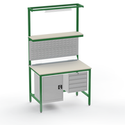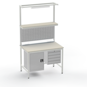 Struggling with electrostatic discharge risks or cluttered workspaces? This ESD-safe workbench eliminates static buildup to protect delicate components, while the generous storageβlockable cupboard on the left and 4-drawer unit on the rightβkeeps tools and parts organised and secure. Engineered for medium-duty tasks, it includes an upper shelf for extra storage, louvre panel for hanging tools, lighting rail with light fitting for precision work, benchtop electrical outlets for powering equipment, and support bars for stability.