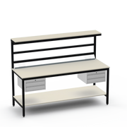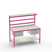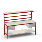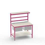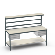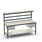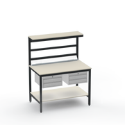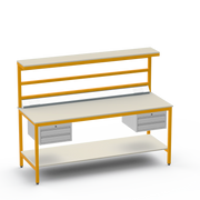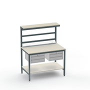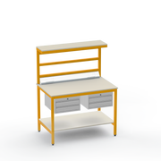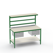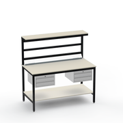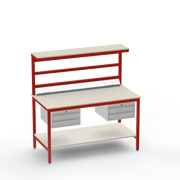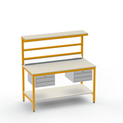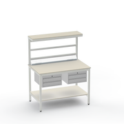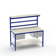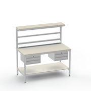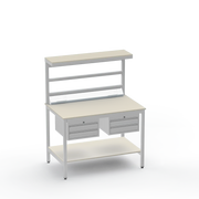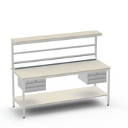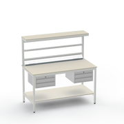 This Medium Duty Anti-Static (ESD) Electronics Workbench features a durable Laminate Worktop and comprehensive storage with 2 Drawer Units on both the left and right sides, plus upper and lower shelves for ultimate organisation.