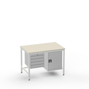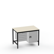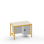 The Medium Duty Laminate Worktop Workbench, built with robust steel construction, supports up to 350kg UDL and offers organised storage with a 4-drawer unit on the left and a lockable cupboard on the rightβperfect for keeping your workshop tools secure and accessible.
