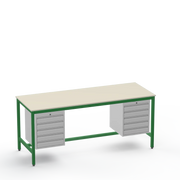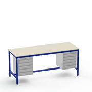 This medium-duty workbench features a resilient laminate worktop on robust steel construction, supporting up to 350kg uniformly distributed load (UDL), and includes dual 5-drawer storage units on both left and right sides for superior tool organisation in demanding workshops.