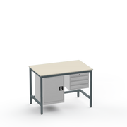 This workbench includes a lockable cupboard on the left and lockable drawers in the 3-drawer unit on the right, each supplied with 2 keys for secure tool and material organisation.