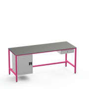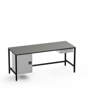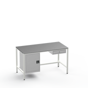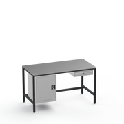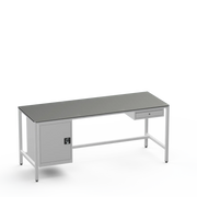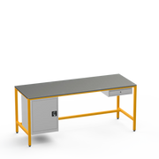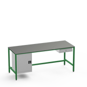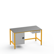 This workbench includes a lockable left-side cupboard and single drawer, each supplied with 2 keys for secure tool and material organisation.