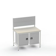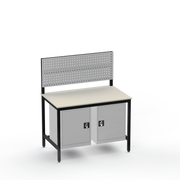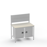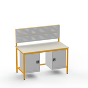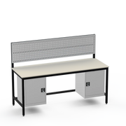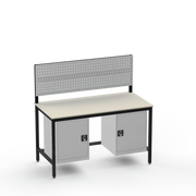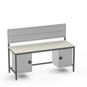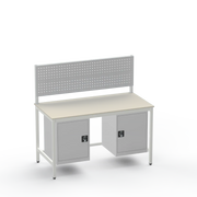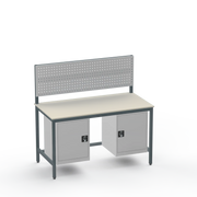 Struggling with cluttered tools and insufficient storage in your industrial space? This workbench configuration delivers exactly what you need: left- and right-side cupboards for secure organisation of parts and equipment, keeping your workspace tidy and efficient. The resilient laminate worktop withstands heavy use, providing a reliable surface for everyday tasks without the wear of cheaper alternatives.