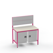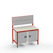 The Medium Duty Laminate Worktop Workbench is constructed from robust steel and supports up to 350kg, featuring dual lockable cupboards and a tool panel for organised, secure storage in demanding workshops.