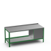 The bench is fitted with a 2mm galvanised steel worktop, providing excellent resistance to impact, oils, heat and general wear — perfect for tough daily tasks. On the right-hand side, a fully enclosed steel cupboard offers secure storage for tools, equipment, and materials, helping keep your workspace organised and clutter-free.