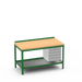Heavy Duty Steel Workbench with 44mm Solid Wooden Top, 4-Drawer Unit & Lower Shelf
