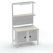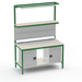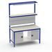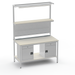 Medium Duty Anti-Static (ESD) Electronics Workbench with Laminate Worktop – built for sensitive electronics work, featuring dual Cupboard w/ Drawer storage units, tool panel, upper and lower shelves, lighting rail with light fitting, support bars, and benchtop electrical outlets for ultimate organisation and safety.