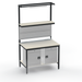 Full Shelving Suite: Upper shelf, lower shelf, and support bars maximise vertical space for components and supplies.