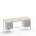 This medium-duty workbench features a resilient laminate worktop on robust steel construction, supporting up to 350kg uniformly distributed load (UDL), and includes dual 5-drawer storage units on both left and right sides for superior tool organisation in demanding workshops.